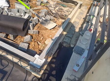 По периметру участка монтируем гранитный цоколь, состоящие из балок секции которого будут разделены невысокими столбиками.