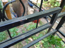 Последовательность работы стандартная. Во-первых, сжечь старую краску, во-вторых, зачистить ограду до металла, после покрыть грунтом чистый металл и покрасить черной краской. После покраски убраться на могиле. Далее на фото обожженная краска на ограде.