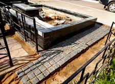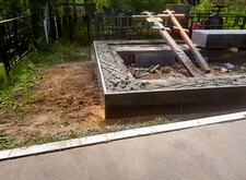 Приступаем к работе с цветниками. Один уже был в наличии, поэтому делаем второй, идентичный. По проекту цветники должны смотреться одинаково даже несмотря на то, что памятники будут разные. В это же время укладываем гранитную брусчатку уже на территорию места захоронения.