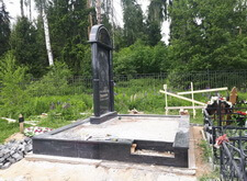 Так выглядит место захоронения после укладки установки памятника и укладки брусчатки